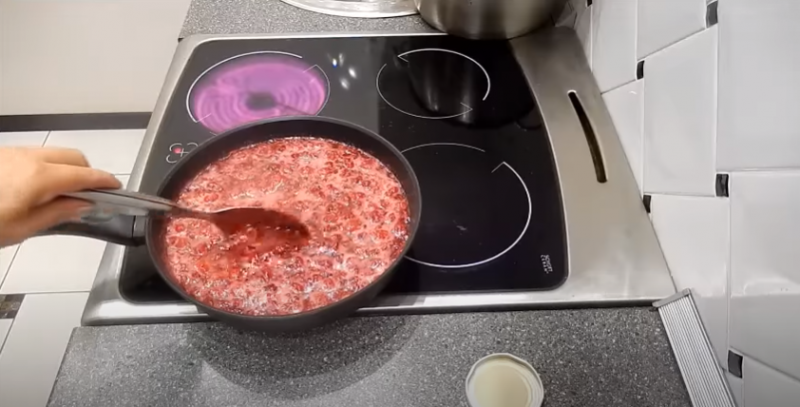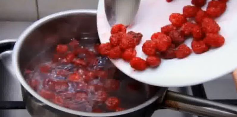 - Влейте агар-агар. Снова доведите до кипения. Добавьте получившееся у вас пюре из малины, продолжая варить полчаса.
